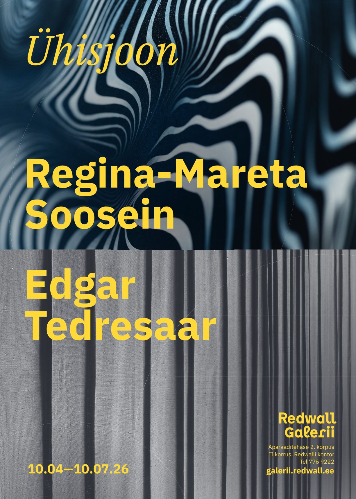 10. aprillil 2026 kell 18:30 on oodatud kõik kunstihuvilised Redwall Galeriisse, sest Aparaaditehase Galeriide öö vol 18 raames avame Edgar Tedresaare ja Regina-Mareta Soonseina ühisnäituse “Ühisjoon”. Näitus „Ühisjoon“ asub Aparaaditehase 2. korpuse II korrusel Redwalli kontori ruumides. Näitus jääb avatuks kuni 10. juulini 2026.