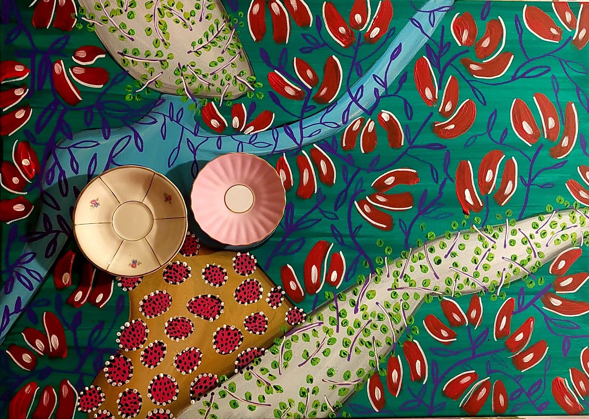 Akrüül lõuendil, taldrikud